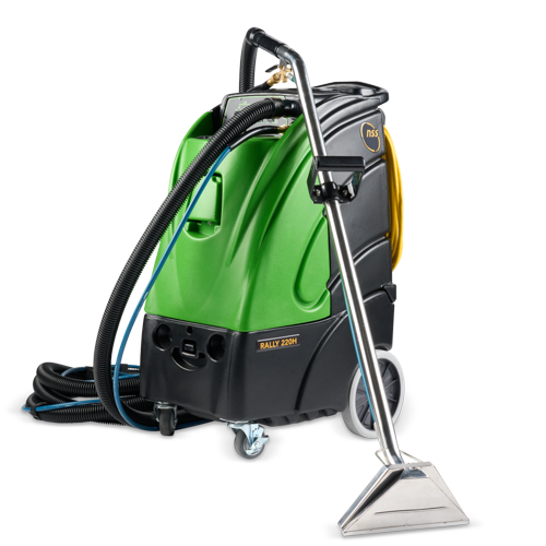 Rally hot and cold water carpet extractors provide deep cleaning and versatility. Innovative features, like built-in circuit detection, will help your staff make the most of their time. Two models:   Rally 220 - A 220 PSI cold water carpet extractor. Rally 220H - A 220 PSI hot water carpet extractor.