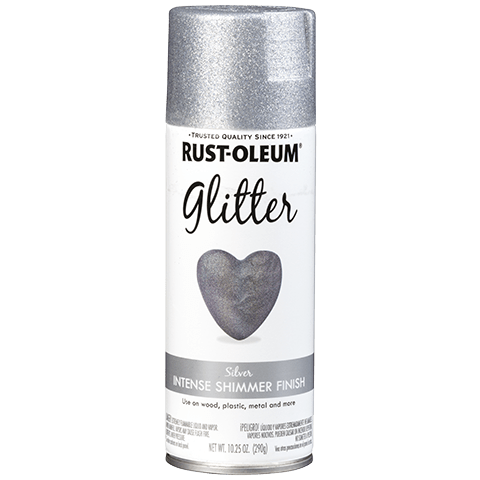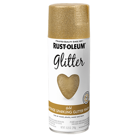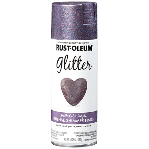 Rust-Oleum® Glitter Spray Paint adds a radiant shimmer to many surfaces, including wood, metal, wicker, glass, ceramic, pottery, craft foam, paper, plastic and more. For added protection, top coat with the Rust-Oleum® Glitter Clear Sealer. For use on interior items only.