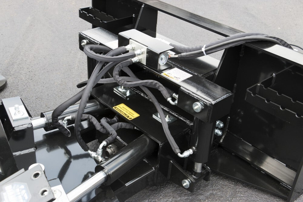 It has a bolt-on edge, skid shoes, and heavy-duty cylinders. Using a proven pivot system, it can tilt 10˚ and angle 30˚. A blade extension is available for 8” of added height. Don’t settle for anything less! It can even convert to a snowplow by pulling two pins and adding a height extension and trip springs.