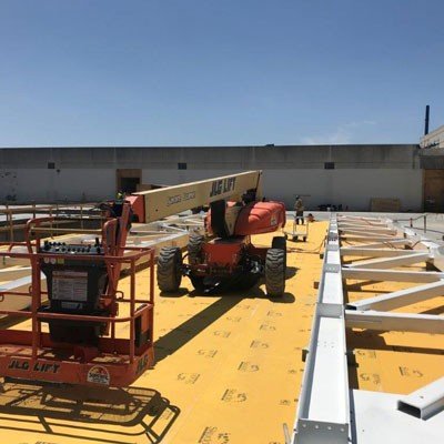 When ready to remove the Skudo Commercial System, work with a partner and simply lift a corner and peel it back at a 45-degree angle. To make the process easier and faster, nip the edge at 2 to 3-foot widths and tear it into thinner strips.