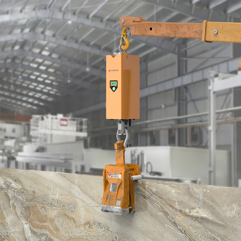 The device works with the Aardwolf Slab and Glass Lifters, forklift, truck crane to lift and move stone and glass sheets