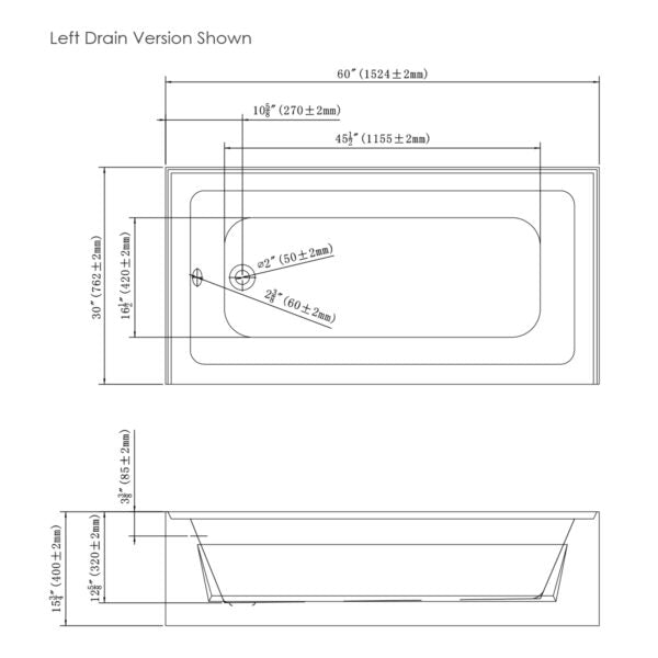 Dakota Sinks UST-ALLC01SNW Signature 60 x 30 Inch Alcove Rectangle Left Hand Drain Bathtub with Nested Tile Flange - White