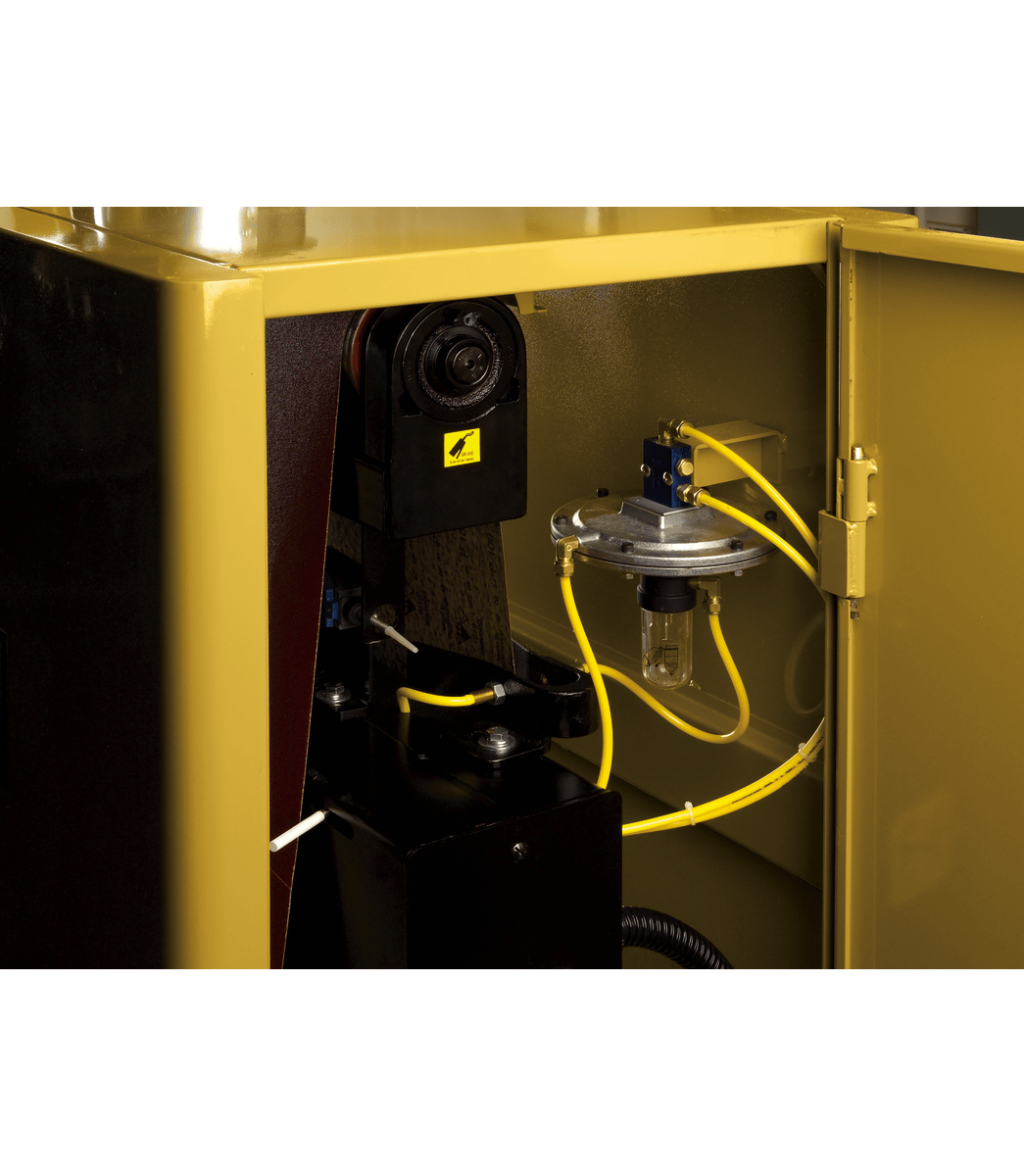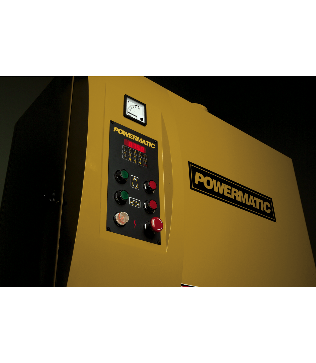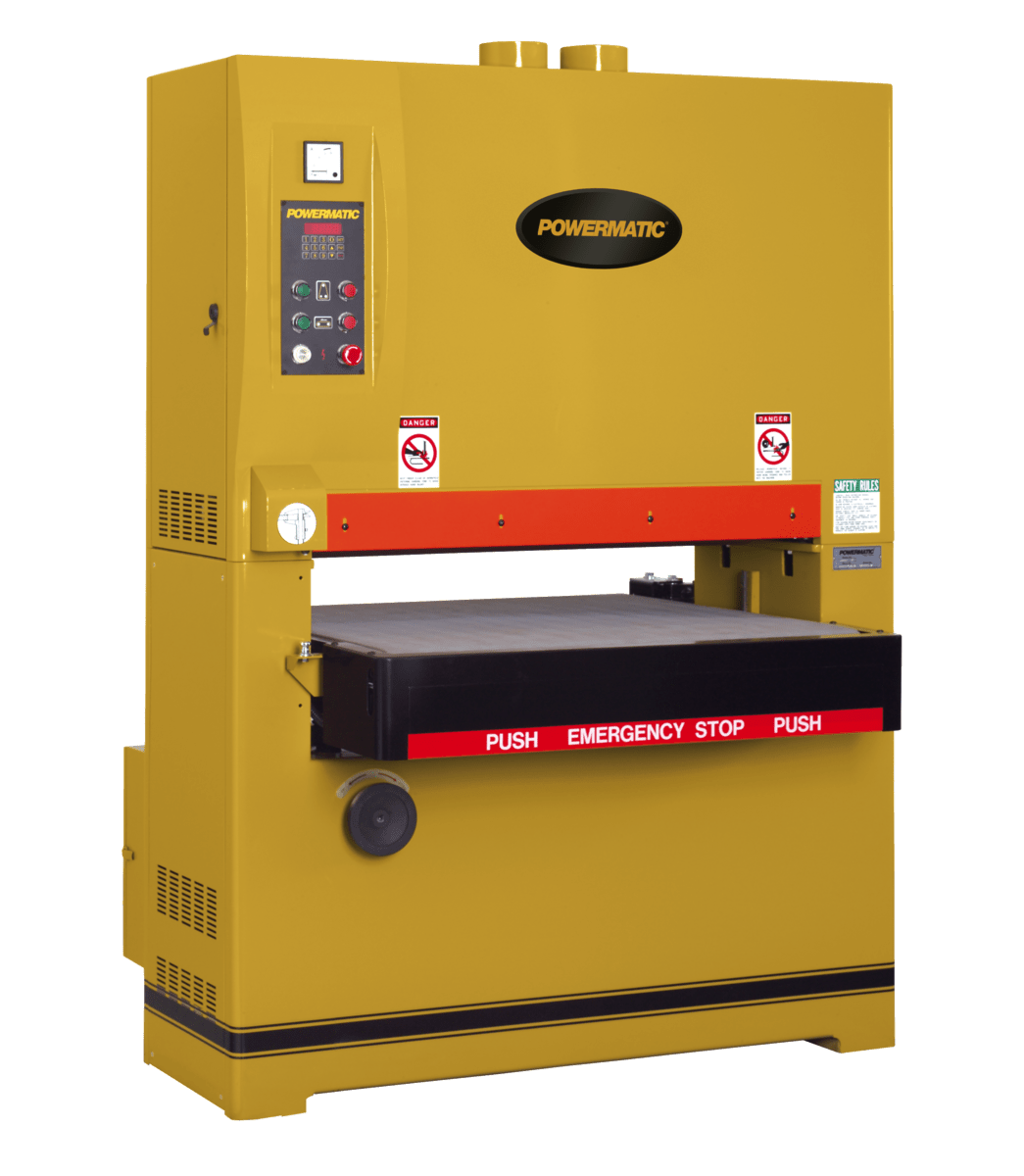 The Sander has centralized controls which allow the user to access all the needed buttons on one simple panel for more convenience. The variable speed feed belt allows the user to accurately dial in the exact feed speed to best suit each project and work environment. The sander also features a special digital readout control. This element is especially helpful because it will show the exact thickness of the finished piece or will allow the user to preset exactly what thickness they would prefer the finished piece to be. The sander also includes a unique measuring device, the auto thicknesser, that will capture the piece of wood to give the user an exact measurement of the starting thickness. The POWERMATIC® 37" Wide Belt Sander has an air-eye system which controls the oscillation for the 37" x 75" sanding belt. This prevents the belt from running off the end of the drums and uses the sanding surface in a more uniform manner. This also ensures sanding lines will not be left on the work piece. The 37" wide belt sander also has a powerful three motor system for maximum performance. The first motor system allows for maximum horsepower to feed the drive drums. A second, smaller motor, directly powers the VS feed belt and a third, smaller motor, powers the feed table up and down to the desired thickness automatically and with ease. For safety, the 37" Wide Belt Sander has a disc brake, which slows the machine quickly and stops it instantly in the event of an emergency.