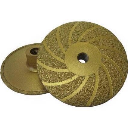 Vacuum Brazed Cup Wheels for grinding granite, quartz, quartzite, marble, and other natural and engineered stone materials.