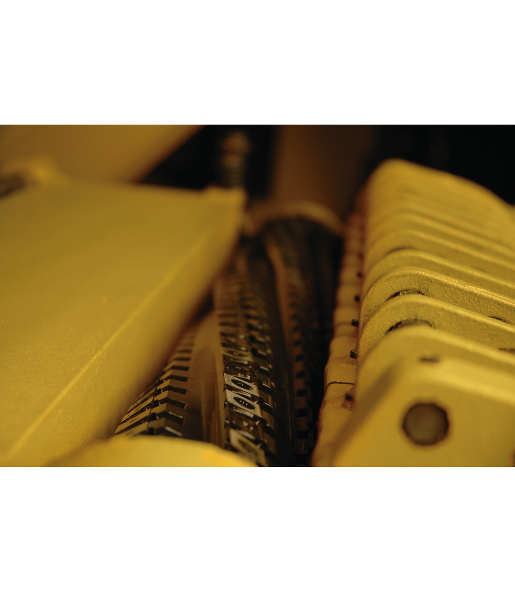 - Massive gear box maintains positive feed by using a large chain drive with automatic tensioners to power infeed and outfeed rollers