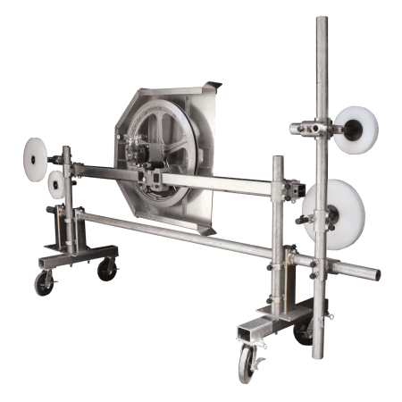 | Idler Wheels: | 8", 10" and 16" special polyethylene wheels with sealed bearings 8" idler adapts to the end of 2" pipe 10" and 16" idlers have 1-3/16" shaft for use with universal clamps |